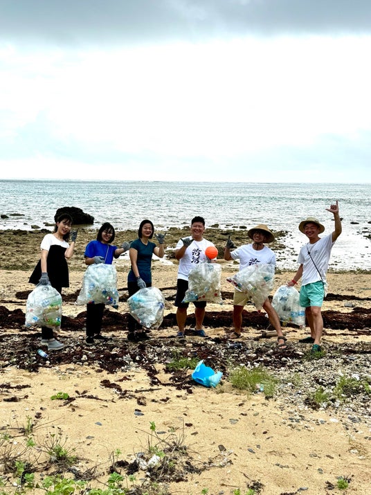 ANA社員による石垣島でのビーチクリーン活動の様子。