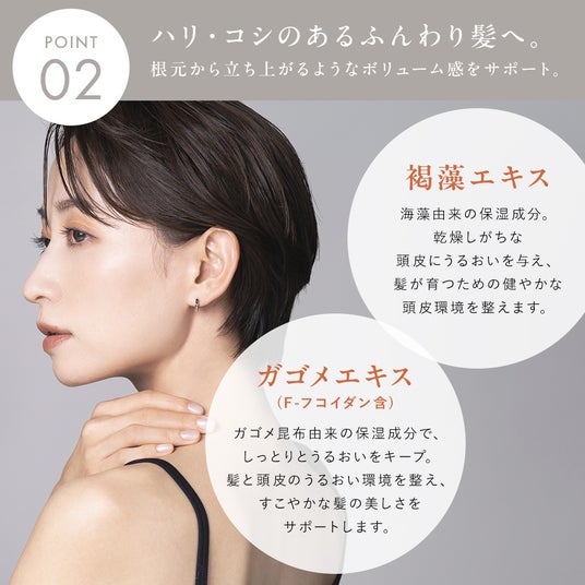 気になるニオイをすっきりケア。根元から立ち上がるようなボリューム感をサポート。