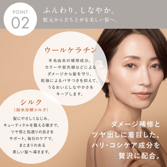 ハリ・コシのあるふんわり髪へ。根元から立ち上がるようなボリューム感をサポート。