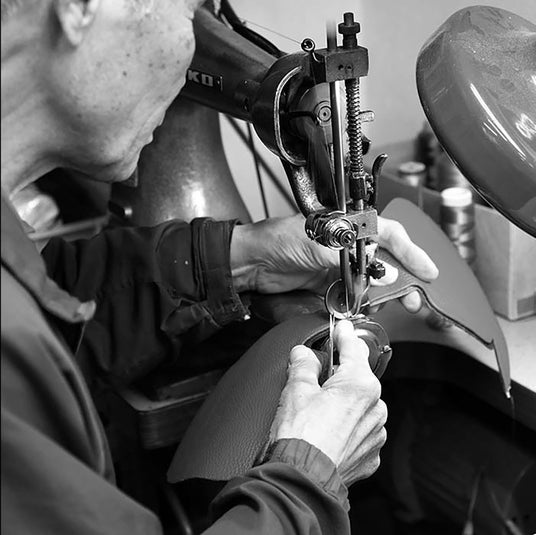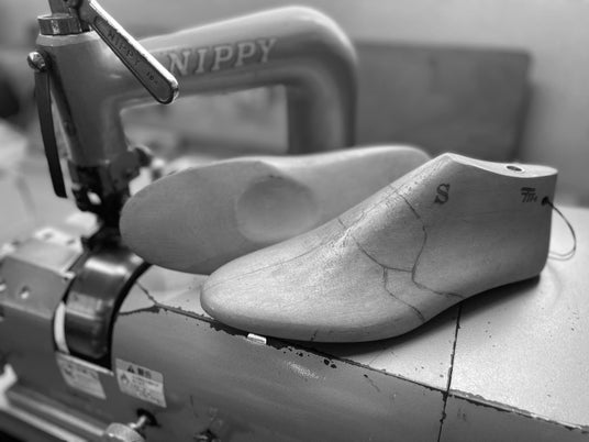15歳で単身上京。当初は洋服の道を志していたものの、偶然の出会いから靴の世界へ。東京で丁稚奉公として5年間修行し、製甲の技術を基礎から身につけました。年季明けと同時に独立。家族を持ち、自らの手で道を切り拓いていきました。