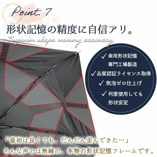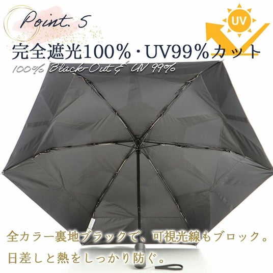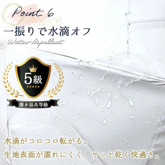 その他機能:紫外線遮蔽率100%、遮光率99.99%以上、撥水最高等級5級、遮熱性、ワンタッチ開閉