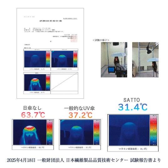 SATTOをさすだけで、頭部の体感温度-32.3℃遮熱性61%で暑い夏の日差しの熱を大幅に軽減しますので、暑さ対策に最適です。