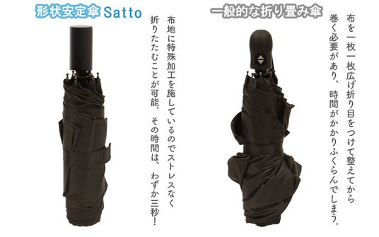 圧倒的なたたみやすさの違いをご覧ください。(左:一般的な折りたたみ傘 / 右:SATTO)