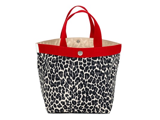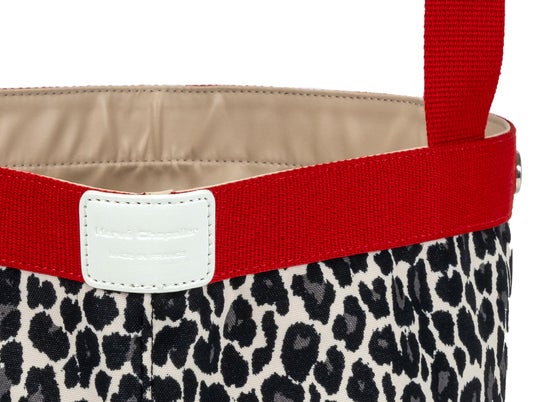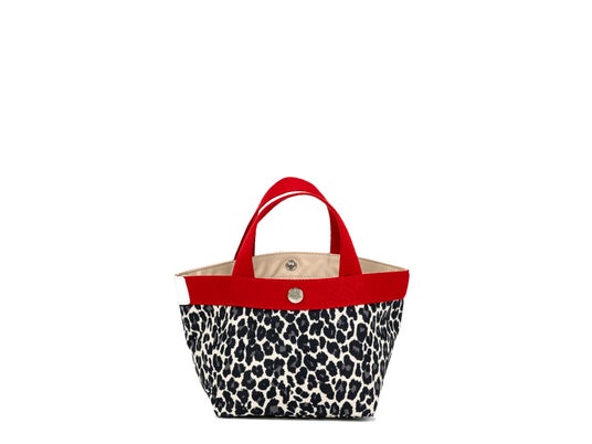 リニューアルに伴い、広島福屋八丁堀本店およびエルベシャプリエ公式オンラインストアにて、限定品を発売いたします。人気のモノトーンのパンサー柄「パンサーブラン」に鮮やかな赤色のハンドル「パプリカ」を組み合わせ、華やかに仕上げました。サイドのレザータグには、限定品のみで使用される「ブラン(白)」タグを採用し、特別感を一層引き立てます。