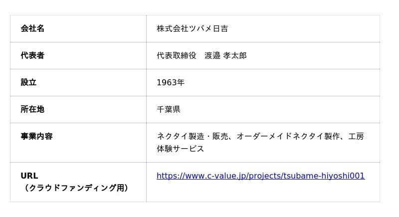 株式会社ツバメ日吉(千葉県、代表取締役:渡邉 孝太郎)は、成人式や就職などの人生の節目に親から子へ贈る「はじめてのネクタイ」のクラウドファンディングを実施し、開始わずか8時間で目標を達成、現在316%の支援を獲得しています。1963年創業の老舗ネクタイメーカーが、従来のB2B製造から「記憶の仕立て屋」として文化創造企業へと進化する新たな挑戦です。