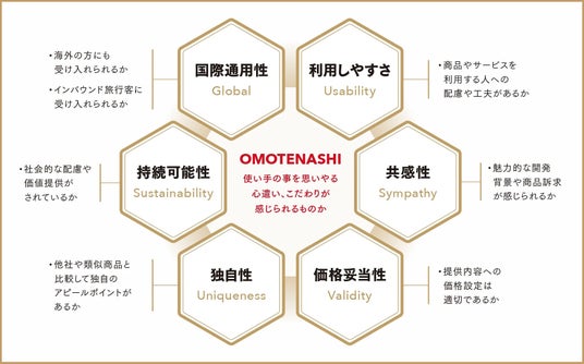 国際通用性・利用しやすさ・共感性・価格妥当性・独自性・持続可能性