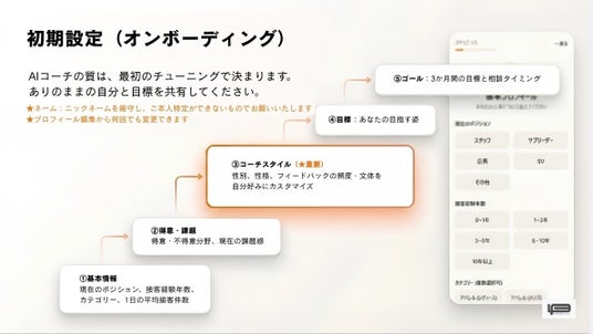 ユーザー個人のデータを学習するとともに、全ユーザーの入力情報がデータベースに蓄積されるため、接客・販売領域における専門性が継続的に高まっていきます。また、一般的なLLM(汎用AI)ではなく、約2年8か月分の独自接客データと開発担当者の分析ナレッジをAIに反映した「接客特化型」の設計です。