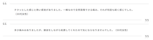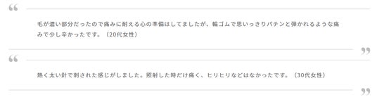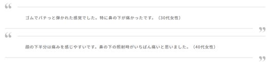 とはいえ、照射時間が短く施術の範囲も狭いため「我慢できるレベルだった」という人が大多数でした。
