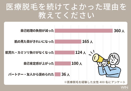 医療脱毛経験者へのアンケート調査では、「痛みを乗り越えても続けてよかった」と感じる理由について、以下のような回答が集まりました。