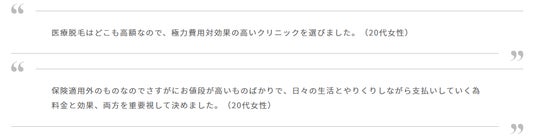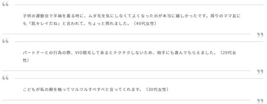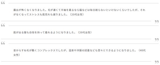 ムダ毛に対する悩みやコンプレックスが減ることで、自信を持って人前に出られるようになったという声が多数寄せられました。