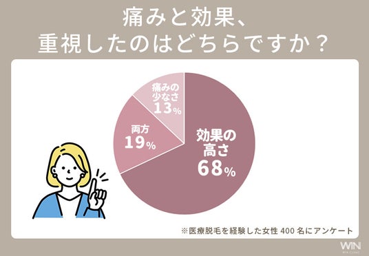 医療脱毛経験者に「痛みと効果のどちらを重視したか」を尋ねたところ、以下のような結果となりました。