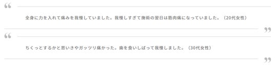 ただ「痛みはあっても短時間で済む」「回を重ねるごとに慣れた」というポジティブな意見もありました。