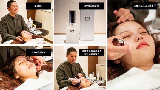 「iPS美容鍼(R)︎」は、「iPS細胞美容液×エクソソーム×鍼」の三層設計から成る日本初の美容鍼メニューです。肌のターンオーバーを促し、ハリ・ツヤ・透明感・リフトアップの効果が期待できます。さらに、小顔整体やアロマヘッドスパを組み合わせることで、フェイスだけでなく“全身の整い”を体感していただけるご褒美設計となっています。「iPS美容鍼(R) PREMIUM」の施術フロー