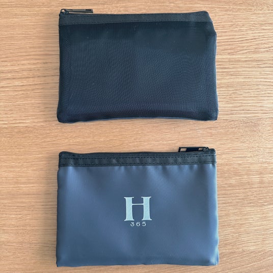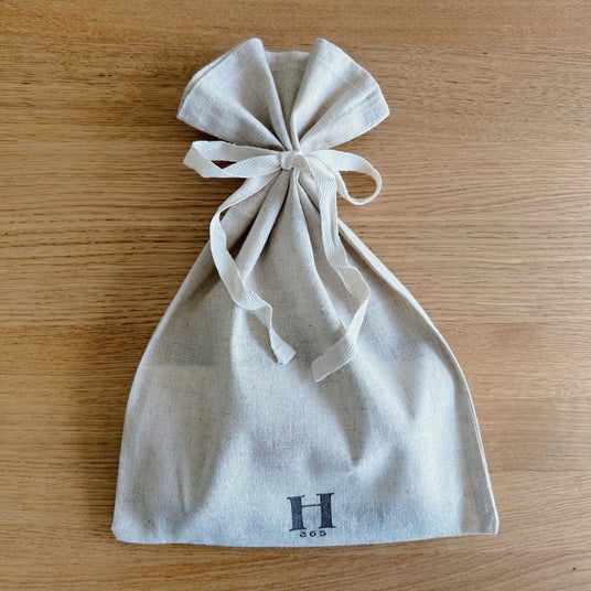 ロゴ入りリネンコットンギフトバッグに、H365 UV/ブルーライトプロテクトハンドクリーム・ロゴ入りオリジナルメッシュポーチを入れてお届けします。