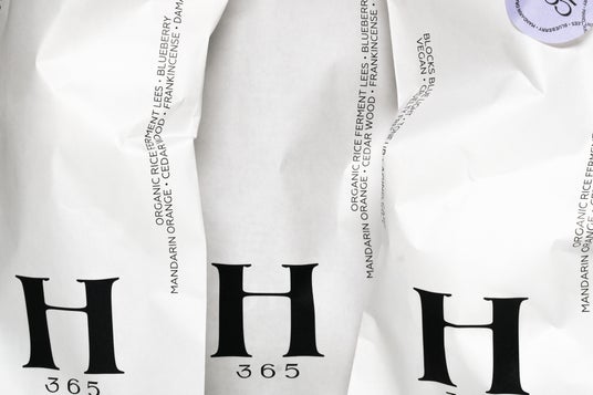 H365は環境への負荷を最大限減らすため、100%自然由来の成分にこだわりました。また、梱包資材を最低限にするため、箱ではなく紙袋をパッケージとして採用しています。紙袋にできるシワもデザインの要素として設計しています。