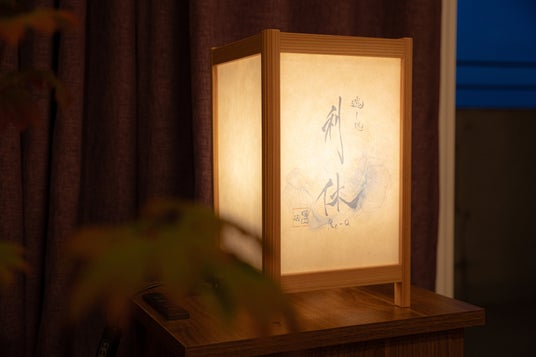 「癒し処 利休」の名を灯すオリジナル灯篭。柔らかな光と共に、サロンの理念である“癒しをデザインする”という想いを静かに伝える。