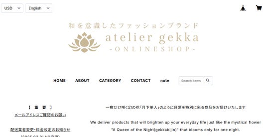 現在、世界的に「Japonisme(ジャポニスム)」への関心が再燃しています。それは単なるお土産品に留まらず、日常の暮らしに溶け込む洗練されたアイテムが求められているのではないでしょうか。『atelier gekka』が提案する和モダンな衣料や雑貨は、日本の伝統を活かしつつ、現代のファッションに馴染むものばかりです。日本の伝統的で繊細なデザイン・色彩感覚を取り入れた「新しい和」のアイテム。様々な反応から海外にもそれらを求める人がいるのではないかと考えるようになりました。国境を越えて求める人の元へお届けしたい、けれど、越境ECと呼ばれる海外販売は言語や配送など様々な面でハードルが高く踏み出せずにおりました。