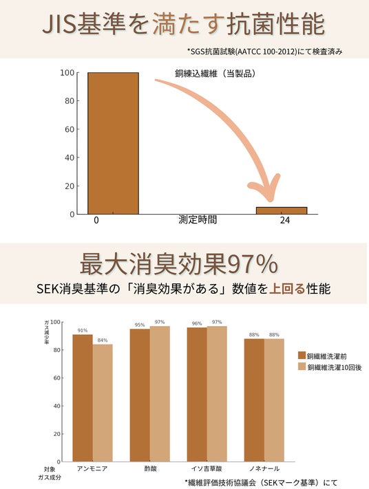 ※本製品は医薬品・医療機器・医薬部外品ではありません。銅繊維の特性により確認された抗菌・防臭性については、第三者機関の評価に基づいています。