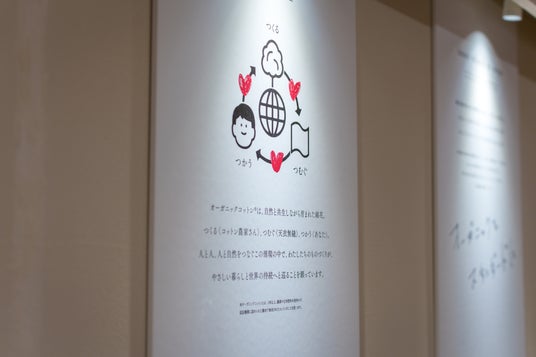 ・五感でわかるオーガニック:無農薬・無化学肥料で栽培された綿を原料に、日本の確かな技術で仕立てた日用品・タオル・インナーを体感。
