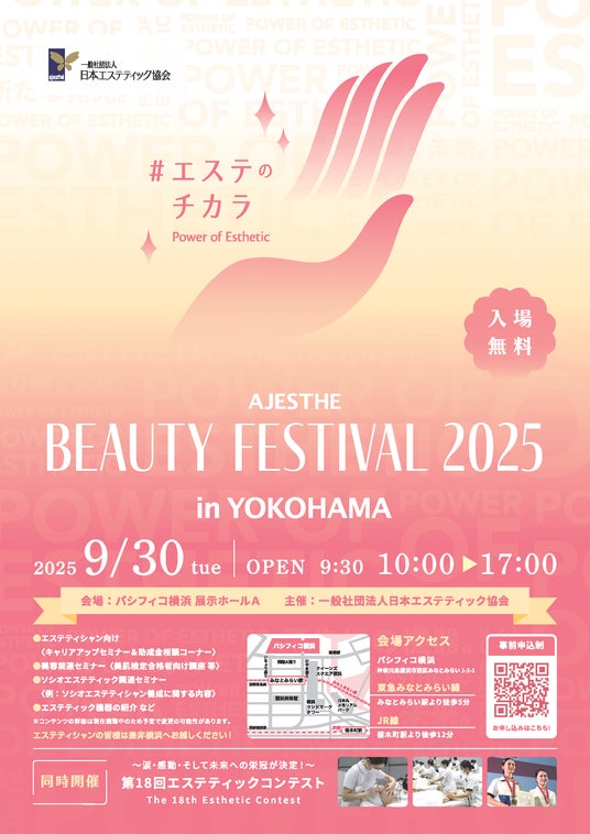 一般社団法人日本エステティック協会(所在地:東京都千代田区、理事長:瀧川睦子)は、第7回「AJESTHE Beauty Festival」および第18回「エステティックコンテスト」を、2025年度もパシフィコ横浜 Aホールにて開催いたします。