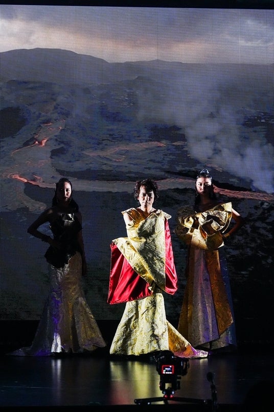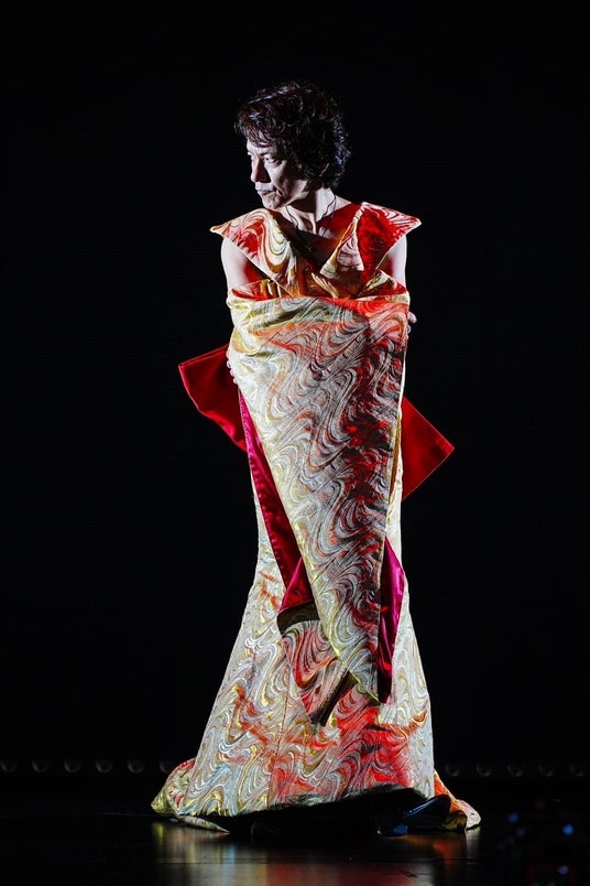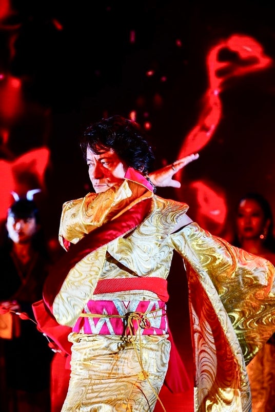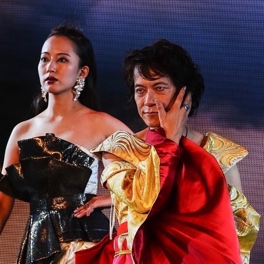 日本文化をテーマとし、伝統美を現代の感性で昇華させた世界的フォーマルデザイナー横山宗生氏のファッションデザインは、国内外から高く評価されています。本ステージでは、歌手のダイアモンド☆ユカイ氏やファッションモデルが「RoseKnight」の代表作「An eternally beautiful world/永遠に美しい世界」および「POISON/Endless Love/永遠の愛」を身にまとい、華やかなショーを彩りました。