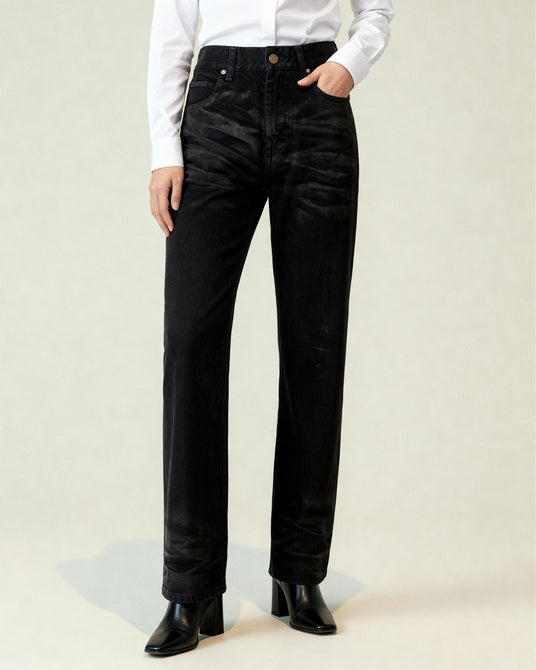 ほぼ不可能と思えるほど深いブラックトーンを追求した、漆黒のデニム。