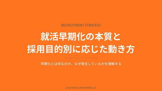 採用コンサルティング・代行事業を展開する合同会社BeTheHERO(本社:愛知県名古屋市、代表社員:佐々木一憲)は、新卒採用を行う企業担当者様、特にアパレル業界の人事責任者様に向けたホワイトペーパー『就活早期化の本質と 採用目的別に応じた動き方』を無料公開いたしました。