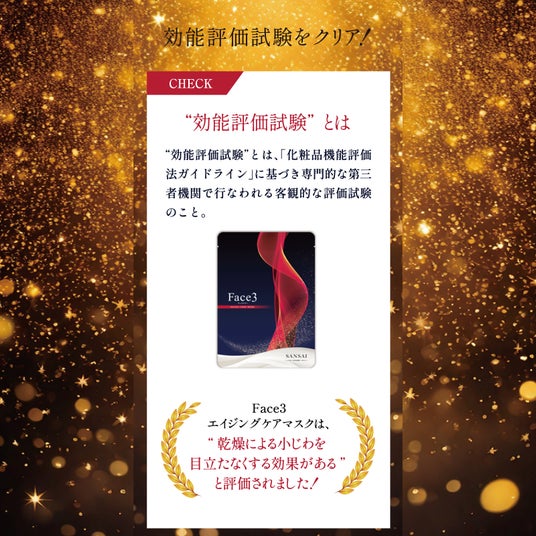 3.効能評価試験済み:抗しわ機能評価試験を専門機関で実施。