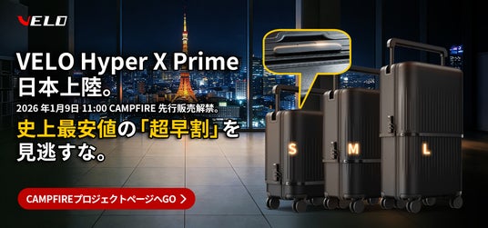 北島国際貿易株式会社(本社:東京都、代表取締役:藤原拓雄)は、2026年1月9日(金)11:00より、アタラシイものや体験の応援購入サービス「CAMPFIRE」にて、容量が変えられるスーツケースの最新モデル「VELO(ヴェーロ)第3世代」の先行販売を開始いたしました。 本プロジェクトは公開開始からわずか1時間で支援総額100万円を突破し、現在も多くの注目を集めています。