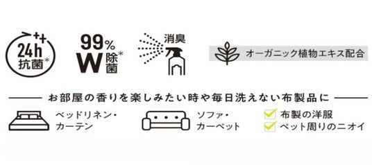 柔軟剤とルーム&ファブリックミスト2種類展開にて一部バラエティーショップ、ドラッグストアにて先行発売中です。