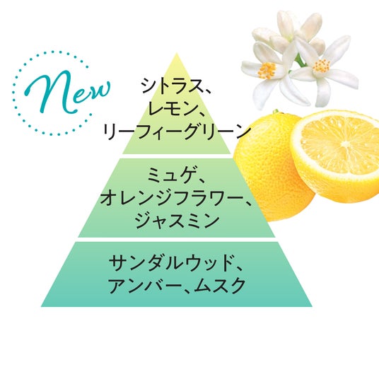 ジェンダーレスで贅沢な香りをコンセプトに調合。みずみずしいシトラスとムスクを基調に、爽やかなレモンが重なります。
