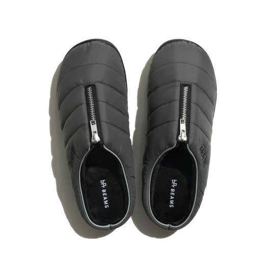 アッパー中央にジップを配したアイコニックなデザインが特徴。上質な光沢感を放つナイロン素材を採用し、カジュアルなサンダルにモードな印象をプラスします。