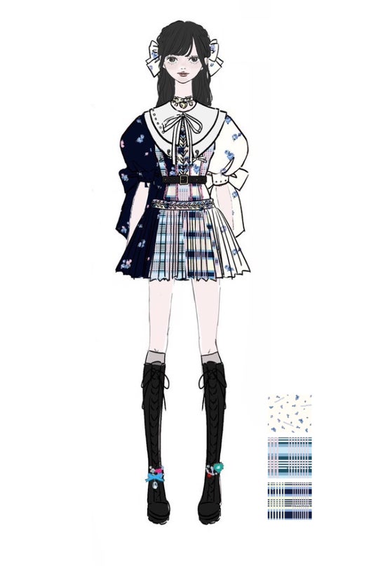 さらに、アシンメトリーなデザインに象徴されるゆらぎや、大ぶりなリボン、クラシカルなセーラー襟といった装いを通じて、ChumToto独自のドリームコアの世界観を際立たせています。