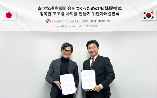昨年、昨年、韓国の介護関連企業から、韓国の高齢社会を素晴らしいものにするために当社のノウハウを提供して欲しいとの打診があり、姉妹提携を結ばせていただくことになりました。