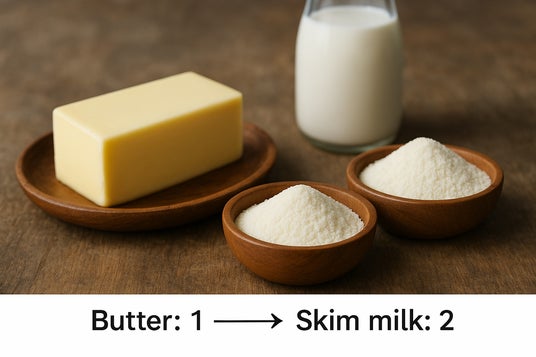 日本の酪農業界では、バターの製造過程で脱脂粉乳が副産物として大量に生成され、その在庫が恒常的に積み上がる課題を抱えています。一方、飲食業界はバターの主要な消費者であり、この構造的課題に深く関わっています。「食」を通じて生産者や酪農の課題に寄り添い、社会課題の解決に協力したいという両者の思いから、今回の取り組みが実現しました。バターを「1」作ると脱脂粉乳は「2」生成される