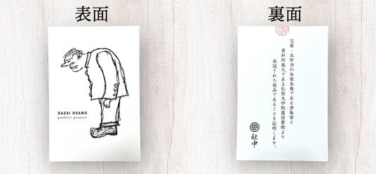 太宰治グラフィティプロジェクトの第一弾として、社中が製作した中で一番人気の太宰治本人が描いたイラストをアイコンに、厚手生地の定番Tシャツと軽くて着やすい昨今のトレンドであるビッグシルエットTシャツを製作しました。