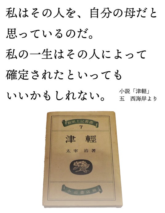 しかしなぜ中泊町なのか。それは太宰治が著作「津軽」で書いた「自分の母と思っている」という子守のタケさんが暮らした町だからです。