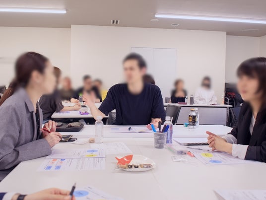 講義と個人ワーク、企業がばらけた形で構成されたグループでのディスカッションで進行。