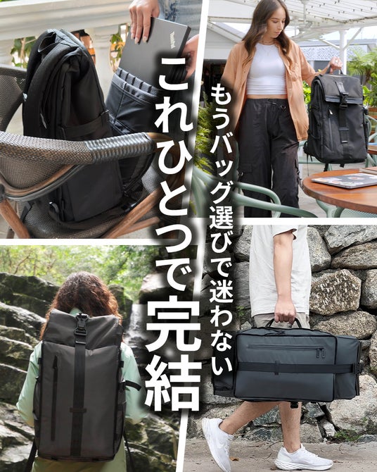 仕事やジムなどの日常~海外旅行や登山などの荷物が多い時はもちろん非常時でも、これ一つあれば収納自在!