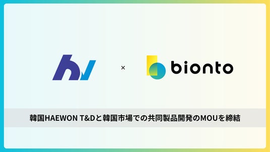 東北大発バイオテックスタートアップの株式会社bionto(本社:宮城県仙台市、代表取締役:妹尾 浩充、以下「ビオント」)は、韓国の化粧品ODM/OEMメーカーであるHAEWON T&D CO.,LTD.(本社:韓国釜山広域市、CEO:HYUN KIWOONG、以下「ヘウォン」)と、 イオン化ミネラルヒアルロン酸複合原料(以下、 Hyalion(TM)) とイオントロニクス技術を活用した美容関連事業の共同検討に関する基本合意書(MOU)を締結したことをお知らせいたします。