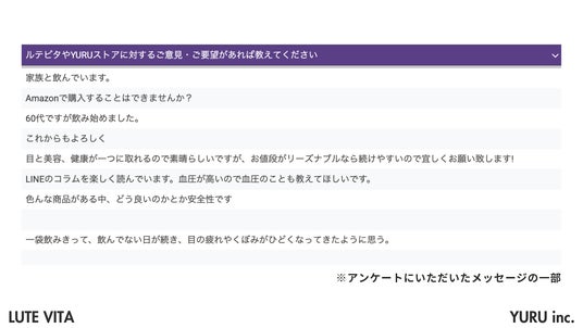 ルテビタやYURUストアに対するご意見・ご要望があれば教えてください
