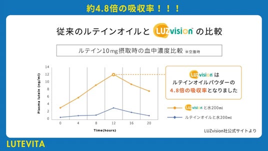 LUZvision社のリポソームルテインを配合し、吸収率が約4.8倍向上