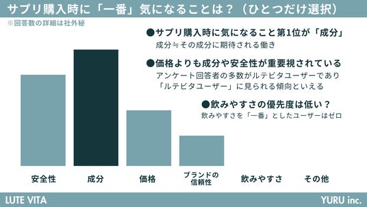 「飲みやすさ」を選んだユーザーはゼロであり、少なくともルテビタに興味をもっていただいているユーザーは、「飲みやすさよりも成分や安全性」を意識していることがわかります。