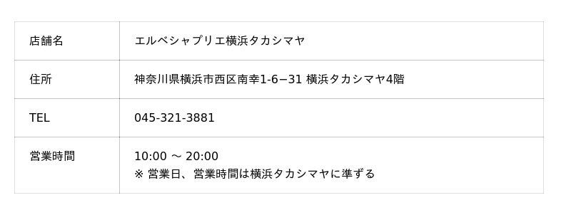 ・エルベシャプリエ横浜タカシマヤ