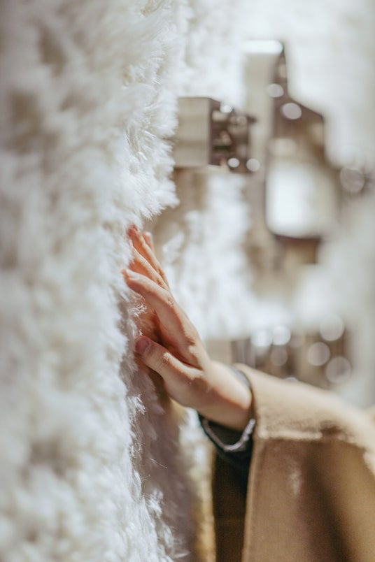 「THE WOOLBOX」のファサードは、羊飼いの小屋から着想を得たデザイン。重ねられた木製シェイグルが、自然の温もりと安らぎを想起させ、都会の中に静謐な存在感を放ちます。一歩足を踏み入れると、羊毛で覆われた壁に包まれ、過去と未来が交錯する体験の旅が始まります。ブランドの重要なマイルストーンとともに、自然とデザインがまるで「呼吸」するかのように調和し、触れることで実感できる“守られている”感覚が、静かで深遠な力となって記憶を呼び覚まします。