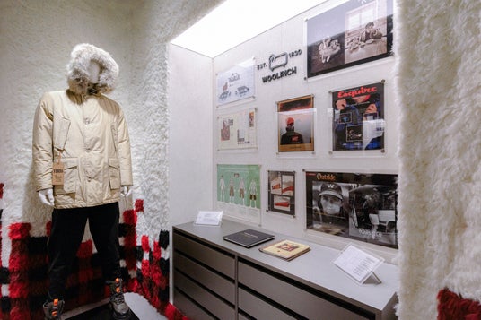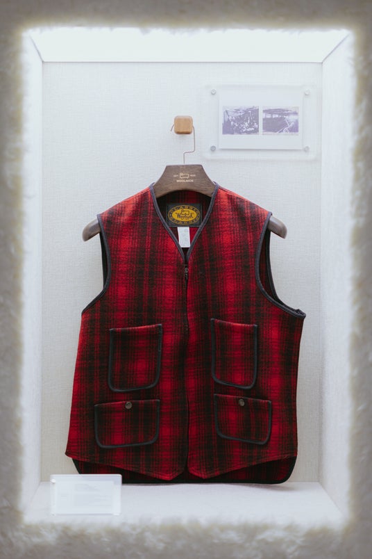 館内では、世界各地から集められた貴重なアーカイブピースを展示。ブランドを象徴する初代パーカーをはじめ、前世紀の貴重な写真や、大切に保存されてきた希少なデザイン画など、WOOLRICHの歴史とクラフツマンシップを間近で鑑賞することができます。