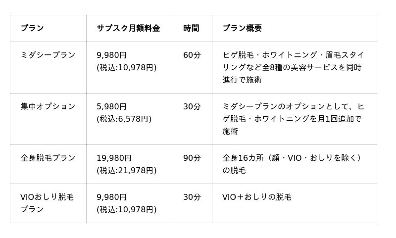 ミダシーでは、男性が美容を習慣化しやすいように、シンプルで分かりやすい料金体系を採用しています。脱毛・眉毛・ホワイトニングなどの美容サービスを、目的に合わせて選ぶことができます。