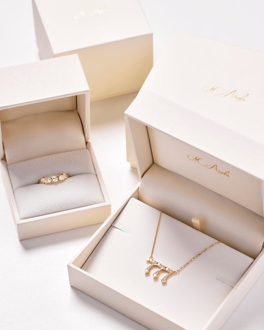 “愛を重ねる、七つの輝き”として7つのハートデザインのリングと、「自分の軸を信じる強さ」と「前へ進む勇気」をそっと後押ししてくれるシンボル、幸運の象徴「777」をモチーフにしたネックレス2型を展開いたします。