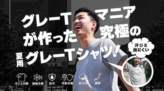 1930年の創業以来、インナーウエアの企画・製造・販売を行ってきた株式会社ハクタカ(本社:大阪府箕面市、代表:竹内一晃)は、シルエットを選べ、汗ジミ・防汚・花粉対策・接触冷感機能をもった夏用のグレーTシャツ「GREYT/グレイト」を開発。