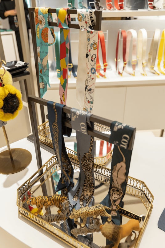 動物やフルーツのモチーフがキュートなバッグチャームや、バッグのハンドルに巻いて使える純国産シルクスカーフも注目を集めました。